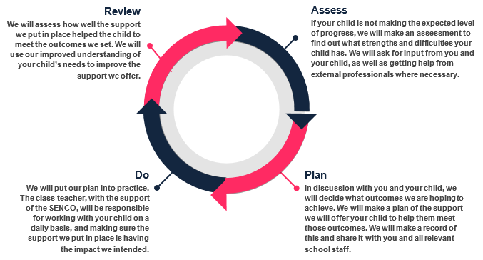 - If parents wish to discuss the options available for their child, they are welcome to make an appointment to see the class teacher, SENCO or a member of the Senior Leadership Team.